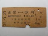 「古 里⇔氷 川」 (氷川〜駅名改称) 34.-7.27/パンチ入B型券 傷汚れなど有/状態良 |
