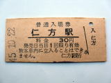「仁 方 駅」 ( 呉 線) 45.10.22/30円券 傷汚れなど有/状態優〜良 |