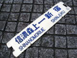 | ホーロー浮文字クリーム板 「信濃森上⇔新 宿/松 本⇔新 宿」 所属/○松 傷汚れなど有/状態優〜良 |