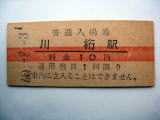 「川 桁 駅」 (磐越西線) 40.-8.13/赤線入10円券 傷汚れなど有/状態優 |