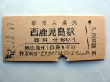 | 「西鹿児島駅」 (鹿児島本線) 52.11.17/60円券パンチ入 エラー/横棒線位置 傷汚れなど有/状態優 |