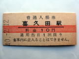 「喜久田駅」 (磐越西線) 40.-2.12/赤線入10円券 傷汚れなど有/状態優 |