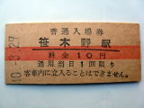 「笹木野駅」 (奥羽本線) 40.-3.29/赤線入10円券 傷汚れなど有/状態優〜良 |