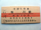 「塩 川 駅」 (磐越西線) 40.12.29/赤線入10円券 傷シワ汚れなど有/状態良 |