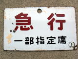 | 帯無ホーロー板 「急 行・一部指定席」 所属/○上 裏面マジック書有 傷ペンキ付着汚れなど有 状態良 |