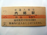 | 「内 郷 駅」 (常磐線) 39-5.-3/赤線入10円券 傷汚れなど有/状態優〜良 |