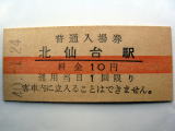 「北仙台駅」 (仙山線) 40.-1.24/赤線入10円券 傷汚れなど有/状態優 |