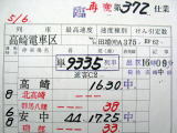 再変第372仕業 高崎電車区 5月6日施行 田端(所)A375 EF62 単9335列車 高 崎(16.30)→横 川 1枚/印有/ケース無 傷汚れなど有/状態優〜良 |
